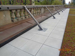 Under the leadership of Architectural Resources Group, PRC designed and prepared construction document drawings and technical specifications for roof and flashing systems. In order to accommodate the various physical, practical, and fiscal project constraints, two membrane system configurations were developed; an adhered conventional compact insulated single-ply EPDM roof system was designed to cover the large upper roof area over the majority of the building, while a protected membrane assembly having reinforced hot fluid-applied rubberized asphalt waterproofing overlayed with ballasted insulated overburden was designed to cover smaller lower roof areas. PRC worked closely with ARG to develop clean details to address the challenging membrane termination conditions presented at all roof area perimeters by the historic sandstone balusters and cornices. PRC also coordinated with ARG in concert with their structural engineer and landscape architect to designate areas eligible to be covered by green roof (or eco-roof) vegetative overburden and advised on performance requirements for green roof system components and their configuration and termination above the roof membrane.